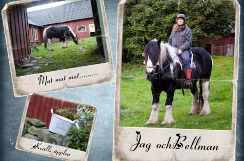 Monica och jag hann att ta en liten turbo tur med mina vandaler. Bellman ville inte flytta på sig när vi tryckte honom åt sidan och jag som var stressad tappade humöret. Bellman svarade direkt med samma humör och gick sonika ur tränset och rusade ner i den lille hagen. Fick fösa runt honom en stund innan han gav sig och jag kunde sätta på tränset igen. Både jag och Elvy misstänker att han har varit totalt vidrig som hingst. Få se om jag blir tvungen att ändra fodret lite igen. Vi skall ut på längre tur imorgon så då hoppas jag att det kommer att fungera bra.