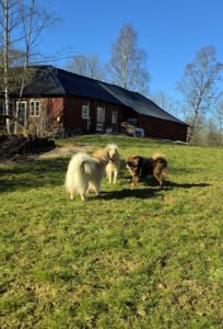 Det kom en granne tidigt i morse och undrade om jag saknade ett par hästar. De hade gått rätt genom tråden och över stora vägen, tyckte tydligen den stora ängen som låg närmast var för kuperad med tanke på att det fans välklippta trädgårdar med äppelträd som var mycket trevligare och så slipper de ju bli blöta i hovskägget (hu så hemskt) .