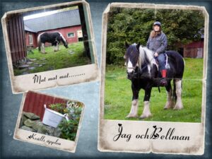 Cardan stod hyfsat still när hon la på sadel, normalt sett brukar han ha problem med att stå stilla. Här står Carolin och gosar en stund med honom.