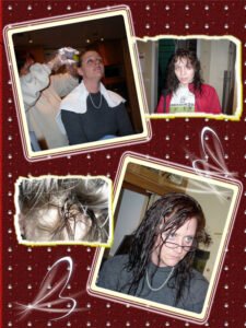 Onsdag och vi var hos Rosa. Elvy ville ha sitt hår färgat och tyckte det kunde vara en bra grej att göra en onsdag. Hon hade köpt en förpackning fel färg så den tyckte hon att jag kunde testa i mitt hår. Elvy brukar köra någon mahogny brun, själv var det åratals som jag färgade håret och tyckte väl lite si så där om att testa Elvys mörkbruna färg. Men vad tusan är det kärring-onsdag och det är färgning av hår så är det väl bara att färga och se glad ut. Jag var lite orolig att jag skulle bli för mörk, men det blev riktigt bra. Rosa färgade Elvys hår och Elvy färgade mitt. Rosa hade färgat sitt ganska nyligen så hon stod för god mat och underhållning.