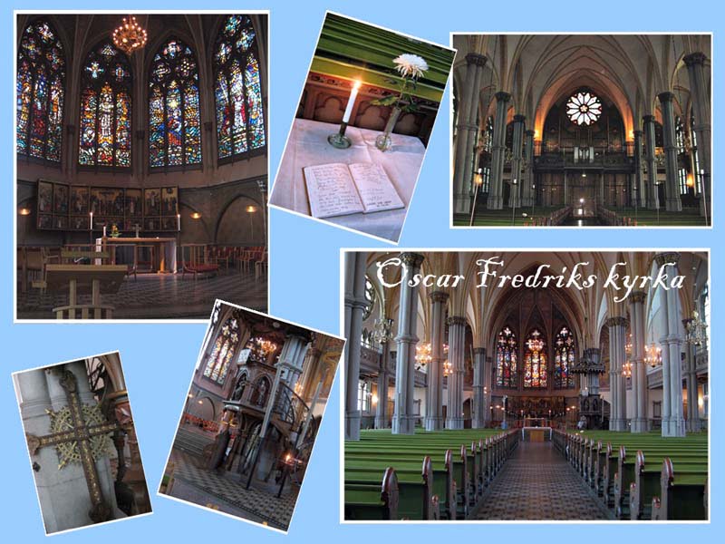 Sedan gick vi upp till Oscar Fredriks kyrka som invigdes 1893. Arkitekt var Helgo Zettervall. Till vår glädje var kyrkan öppen och vi gick in och tände ett ljus för våra nära och kära. Det var första gången jag var inne i den kyrkan. Jag har sett kyrkan många gånger men det har aldrig blivit av att jag tittat närmare på den. Jag börjar förstå hon från Oslo som tyckte vi hade vackra byggnader. Jag tänker under sommaren ta en närmare titt på Göteborg och titta mig ordentligt runt och se vad jag hittar. Det känns lite skrämmande att ha bott så nära och veta så lite om byggnaderna. Jösses jag måste ha sovit på varenda historier lektion i skolan. Tur att internet finns så jag kan söka information nu.