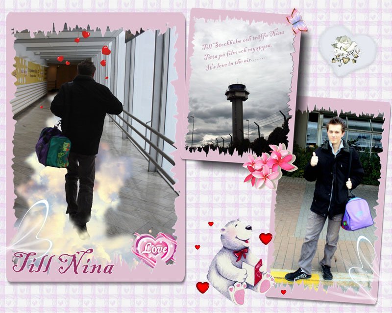 I dag fick jag snabba mig hem från jobbet. Micael skulle med flyget till Stockholm och träffa tjejen. Begriper inte varför de skall ha tjejer så lång bort? det måste ju finnas någon här i Göteborg. Jaja det är ju det när de träffas över Internet, det blir liksom inga avstånd, tills den dagen de skall träffas. Han har tagit tåget de andra gångerna, men nu var det fullt så det fick bli flyget och det tyckte han i och för sig skulle bli spännande. Om inte annat så får han ju träffa tjejen snabbare. Det är bara inse att ungarna börjar bli stora.