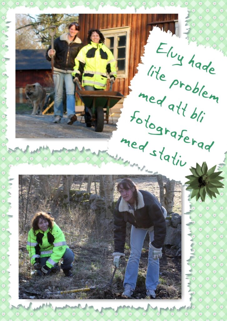 Jag har börjat ta kort med stativet, dels för jag är lite trött på att visa bilder på före och efter saker man gjort. Har väl kommit in i en stativ-period. Elvy är van att stå helt still så bildserien blev helknasig , jag är överallt och Elvy står på samma fläck. ( Så nu har jag bildbevis på hur hon jobbar )