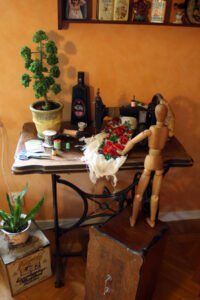 Lill-polarn hade tagit på sig sina raggisar för han ville inte få flisor i fötterna. Han hade fått en i går när han brakade igenom golvet och ville ta det säkra före det osäkra nu när han skulle gå på trägolv igen. Lill-polarn har funderat länge på vad den konstiga ställningen var för något och väntade spänt när jag plockade fram hängmattan. När jag gjort klart och springer in för att hämtar radion hör jag hur Lill-polarn pratar med Esmeralda.