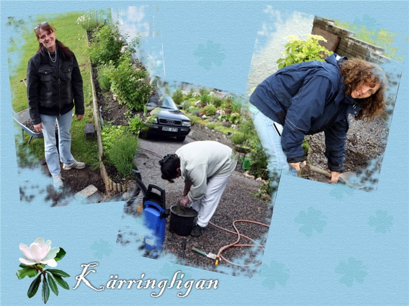 Ojoj! I dag blev vi klara sent på våran kärring onsdag.  Rosa ville cementera en trappa ner från grusgången till gräset. Jaha? tänkte jag och Elvy och började fundera på hur vi skulle fixa detta. Ingen av oss hade cementerat mera än varsitt rabarberblad som sprack. Men det var bara att börja gräva och hoppas på att det skulle fixa sig.