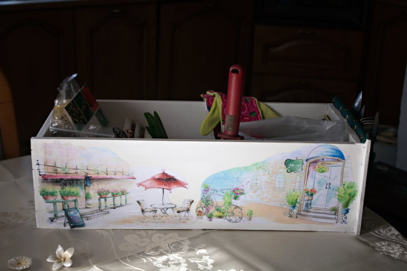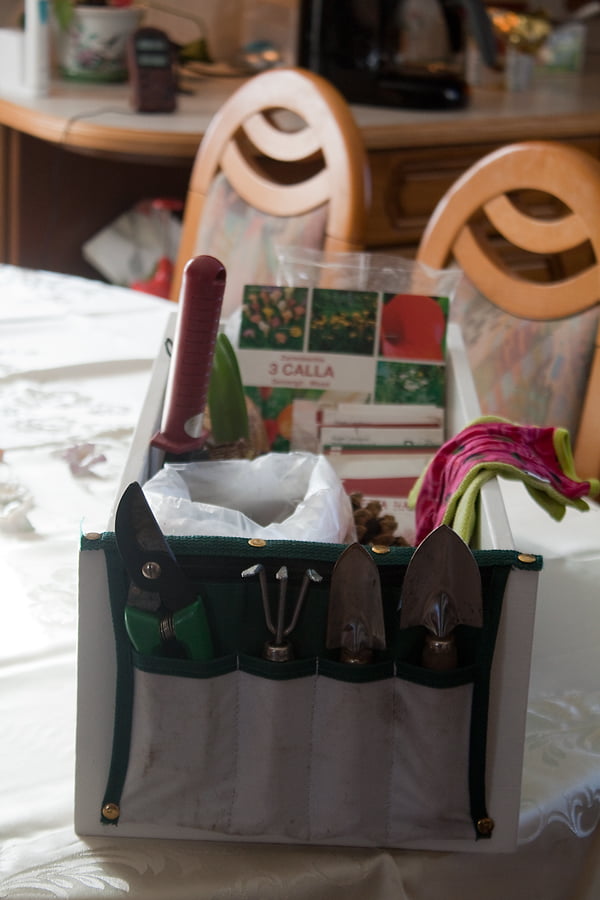När jag fodrade i morse så snöade det. Stora fluffiga bollar – precis vad man vill ha nu! Som tur var höll det inte på så länge utan nu är det strålande sol ute. Har precis strukit på det sista limmet över ena sidan av min trädgårds låda, så nu är den helt klar. Lite mer tork tid, men sedan klarar den av att vara på utsidan. Hittade mängder av fröer och trädgårdsverktyg under trappan! Det har tydligen varit en plats där man hivar undan allt och blundar.