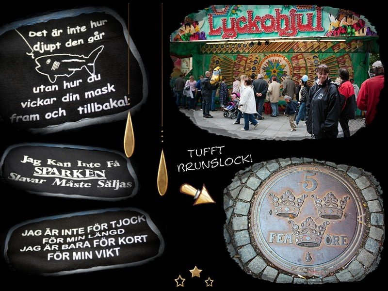 Alingsås är inte så stort och vi blev mäkta imponerad hur de lyckades få plats med ett riktigt stor tivoli del. Det var ganska många åk attraktioner och stora spelhjul. De hade verkligen fått plats med något för alla. Elvy gjorde mig uppmärksam på detta vackra brunnslock mitt i folkvimlet. Det var mycket att se på men vi drog oss lite åt sidogatorna när det blev lite väl mycket folk.