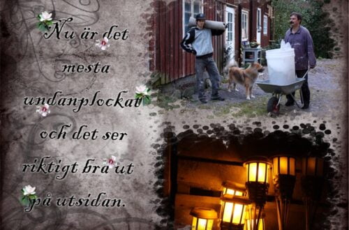 Nu har jag bara gurk rören kvar i nedre landet och  plockar in gurkor för fullt. Fast gurkan i röret lär väl bli kvar! Ser verkligen fram emot nästa sommar då vi kan fortsätta att planera i trädgården och då kanske även sätta rör till Micael och Tobias. Nu har jag en hel dröse med rör och förmodligen kommer varenda en att användas.