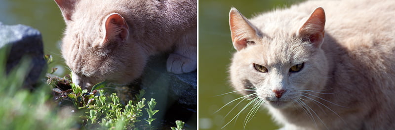 Edgar kämpar tappert med att tömma dammen men än så länge är det vatten kvar. Helt otroligt vad den katten ser grinig ut.