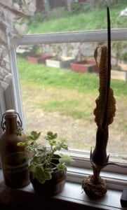 Han har ett hål i dräkten, men sätter man en lapp där eller bara tråcklar lite så blir den som ny. Det är så svårt att hitta saker för olika dekorationer, paketet och noterna kommer från en ljus manschett.