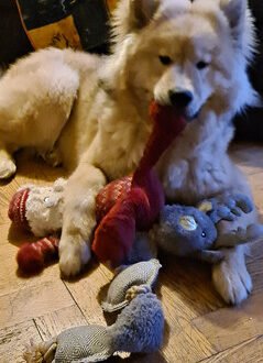Sedan tycker både Pepper och Shakira att det är roligt med snön. Shakira har fått så tjock päls att hon gärna vill ligga ute. Pepper vill väl helst ligga inne i soffan med tänd brasa.
