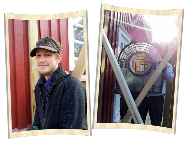 Vi har fÄtt ett gammalt blyinfattat fönster som har suttit pÄ en bio i Uddevalla. Tror att Claes-Olofs morfar fick fönstret en gÄng i tiden och har suttit pÄ hans uteplats. NÀr Kickan sedan byggde om uteplatsen fick vi fönstret. Vi skall försöka fÄ upp det pÄ gaveln, men det blir vÀl att vi tar med den om vi flyttar. Vissa saker vill vi gÀrna skall gÄ vidare inom familjen och Micael gillade verkligen fönstret.