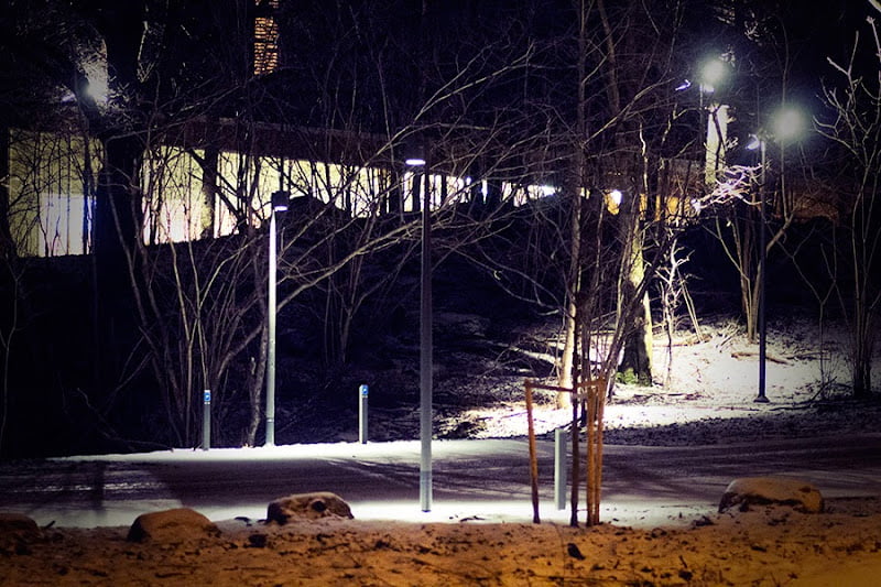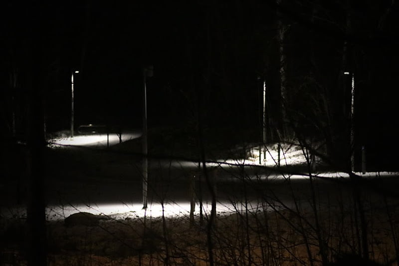 Det här är infarten till den nya religionsneutrala begravningsplatsen i Kållered. Ceremonibyggnaden som jag tycker ser ut som en gigantisk Oboy burk kommer än så länge ( enligt mig ) bara till sin rätt på kvällen då den är upplyst. Men jag ser med spänning fram emot när det är helt klart runt omkring och byggnaden har ett par år på nacken. Jag tycker lyktstolparna ser rätt läckra ut och det är bra många mer stolpar än som kom med på bilden. Glömde byta objektiv, så det är fotat med makro.