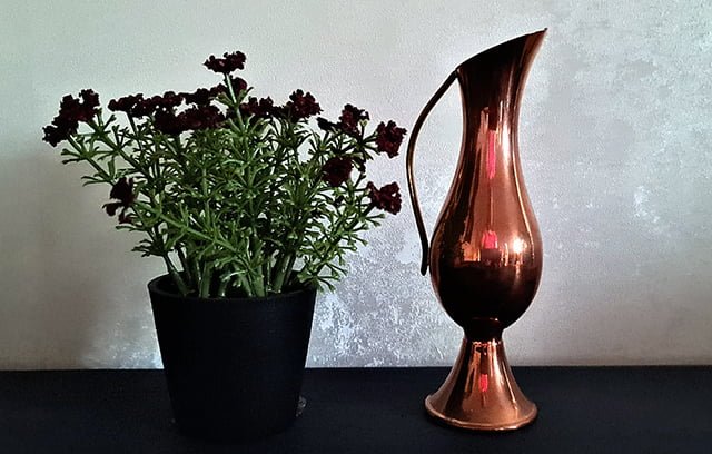 Vi har en hel del arvegods som skall gås igenom och en del kvar från mina föräldrar som skall skänkas. Det blir gärna att man sparar lite för mycket för att man inte riktigt vill släppa taget, men nu när vi renoverar det sista så har vi tömt riktigt mycket, men hittills har det mest varit våra egna köpta prylar. Vi har en del efter Claes-Olofs mamma och moster som nyligen gick bort och jag har sparat en liten byrå som jag kommer att måla om annars är det mest massa udda guld hyllor som vi sparat.  Denna koppar tavlan kommer från Claes-Olofs morfar.