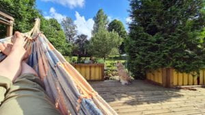 Det var lite vågor och Jippy var inte speciellt badsugen. Hon är en liten badkruka. Men det viktigaste var att hon fick komma ut och gå på promenad, det har varit så varmt att vi har bara varit hemma så hon kan gå in och ut på tomten.