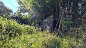 Vi har fyllt igen gropen där en del av ladan stod men pelarna vet vi inte riktigt vad vi skall göra med. Just nu används de som sovplats till katterna.