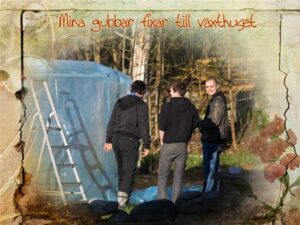 Jippy njuter för fullt och älskar att springa igenom tunneln på morgonen. Att köpa odlingstunnlar var verkligen en hitt. Skall försöka få bort brännässlorna på gödselhögen så det är lättare att ta jord och så att rampen blir fri. Den är så skev och murken och vi kommer att sätta en trappa ned istället. Nästa år kommer vi att odla i köksträdgården. Nu kör vi bara av den så att all gropar försvinner.