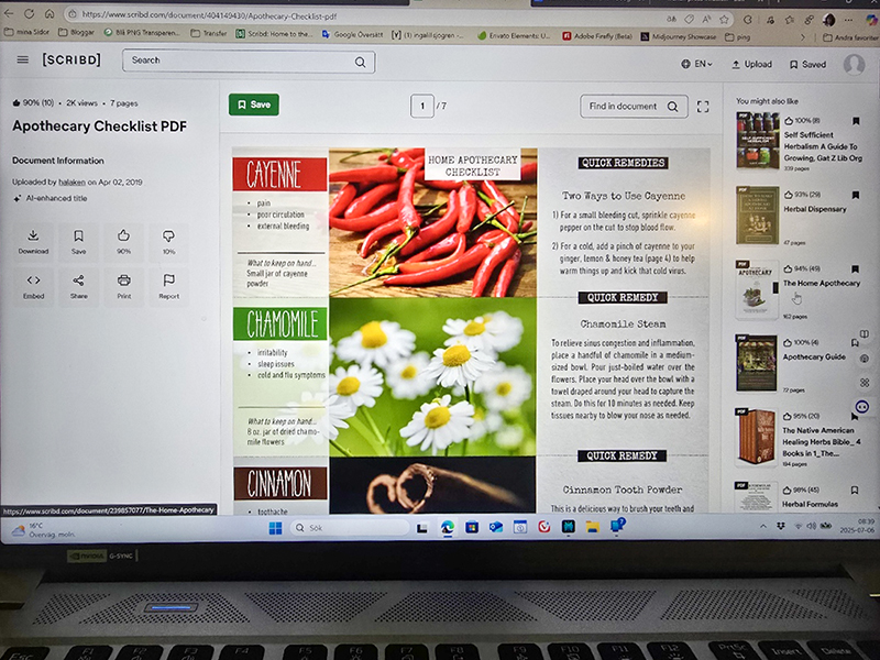 Det regnar och är riktigt surt att vara ute idag, så jag passar på att gå igenom datorn och leta efter olika ört-recept på internet. Då dök sidan Scribd upp, och jag fastnade verkligen för alla ört-böcker de hade där. Perfekt när vädret inte tillåter utomhusaktiviteter – nu kan jag fördjupa mig i örtmedicin och hitta nya spännande recept att prova!