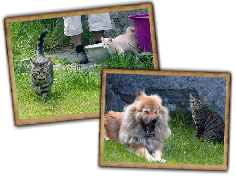 Så med andra ord! Det gick strålande och Amor rusade till trappan beredd att slänga sig in om det dök upp mera konstigheter. Så nu kan har börja få vara ute en bra stund varje dag så att han inte river ner huset för oss. Fick plåtat trollsländor och i år hade vi ett 20 tal smala kornblåa varianter och ett par röda. Hua får hoppas att alla inte lägger ägg i dammen.
