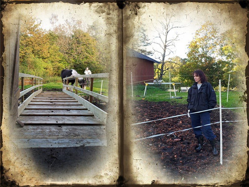 I går när han gjorde det mesta så var han helt slut efter att ha trampat runt i leran, han tyckte att detta jobbet var ett av de tyngsta han haft just för att det blev så tungt att röra sig. Så när allt var klart ville han absolut vara men när hästarna skulle inviga rampen. Bellman kom först som vanligt, nafsade Beethoven när han kom för nära och sedan gick han runt Beethoven och putte ut honom för att gå först. Men!! Så nöjda de var och det är så mysigt att de har så tydliga signaler att även snickaren såg hur nöjda de var.