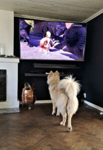 Nu står hon på sin plats här hemma och passar förvånansvärt bra mot den svarta glittertapeten vi har på halva väggen. Ljuset fångas så fint i glittret och det blir nästan som om hon svävar i ett stjärnskimrande moln. En liten loppisfyndad detalj som verkligen satte personlig prägel på rummet.