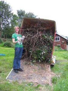 Vi skaffade då en pump till som skall hjälpa till att slussa ner vattnet och det är på håret att det inte rinner över. Men nu behöver vi nya prydnader som vattnet kan rinna ur. Kannan frös sönder så där får vi fixa något nytt.
