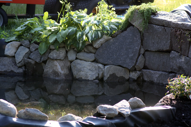 I dag har jag bara flyttat växter från gropen och kört gödsel. Snart har vi blivit av med halva gödselhögen och det är inte färdig gödslat här än. Härligt om jag blir av med rubbet. Har sagt till gubben att det börjar bli dags att fixa pumpen till övre dammen och dra ett rör för det elektriska, vill inte behöva flytta stenar och växter för att dölja det nu när de börjar se bra ut. Skall se om jag kan ta ett kort i kväll när det är mörkt så man får se hur ljusbollarna ser ut, var ute i går men behöver stativet om bilderna skall bli bra.