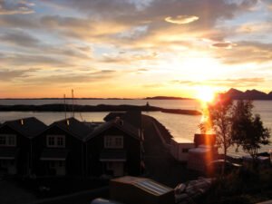 Sent på kvällen tog vi färjan ut mot Kerringøy. Det var tur att vi åkte ut på kvällen så vi fick sovit någorlunda för det blev häktiskt att hinna med dekorationerna innan vigseln. Vi sov i en jätte fin sjöbod. Nedanför oss byggde de sjöbodar för fullt, så det var fullt med isolering och bygg prylar på utsidan men det var vacker runt omkring och vi gick och funderade på om man skulle köpa sig en liten sjöbod (vem vet, man kanske vinner på Lotto någon gång). Det hade varit roligt att besöka min syster lite tätare, det var 15 år sen sist jag var uppe i Bodø och det var på brudens konfirmation. Nu är jag här på bröllop, det är skrämmande vad tiden går fort och hur mycket som kommer emellan innan man får tummen ut och åker upp.
