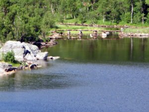 På fredagen blev det sedan fotbollsmatch mellan brudens och brudgummens lag och grillning i Ausvika. Även där vidunderliga vyer och jag hade lite svårt att koncentrera mig på grillningen när det var så mycket att se på. Solen lyste så starkt att jag fick fotografera på måfå och hoppas att skärpan han ställa in sig innan jag tryckte av. De korten jag tog emot solen blev riktigt fina, det ser ut som om det är mörkt ute. Jag kan förstå att syrran hade svårt att få in barnen när de var små.