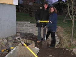 Rosa och Tore hade gjort det mesta på rabattkanten så det var bara hörnorna kvar att göra. Försökte fotografera Tore men han sprang bara iväg och ville inte bli plåtad (han var orolig att hamna i min blogg) paparazzi fotografen Elvy lyckades ta riktigt fina kort på honom och det är ju bra för Rosa att veta att han inte vill vara med i bloggen. Nu kan hon ju köra med att hon vill ha de där dyra rosorna hon såg på Internet, annars så blir det Tore collage i bloggen.
