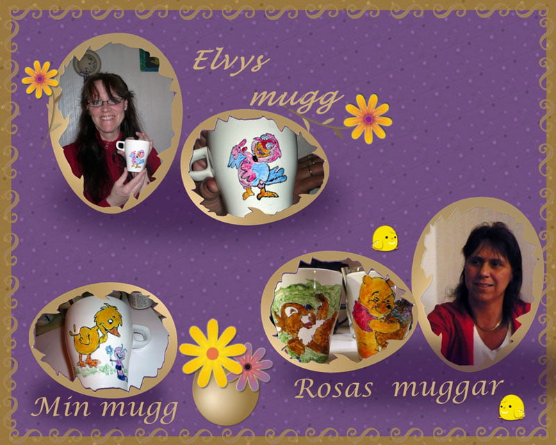 Det var roligt att se Rosas glädje, hon brukar annars vara den stora skeptikern när vi pysslar med sådant hon inte har gjort innan. Det blir nog så att Rosa sitter på kvällarna och gör muggar hädanefter. Rosa berättade att Rusta skall ha ett sett med mugg och färger. Det kan vara kul att testa att måla lite mera i porslin. När barnen var små så pysslade vi nästan jämt.