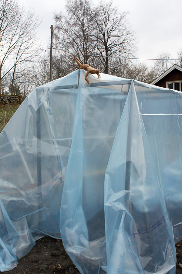 I dag ville Lill-polarn absolut inte köra åkgräsklipparen – men han var desto mer sugen på att åka med där bak. Jag körde lugnt och försiktigt så han inte skulle slungas runt i flaket, men Lill-polarn skrattade så mycket att Shakira blev nyfiken och började hoppa runt bredvid släpet. Allt var frid och fröjd tills vi fyllde …