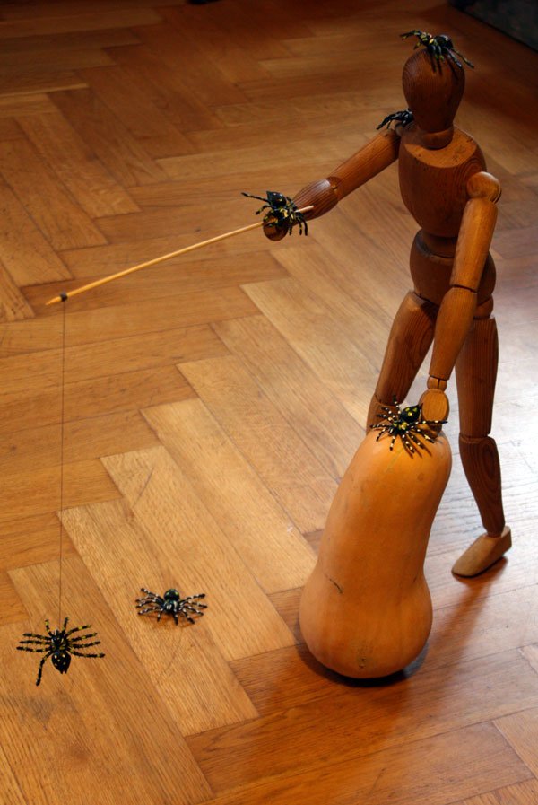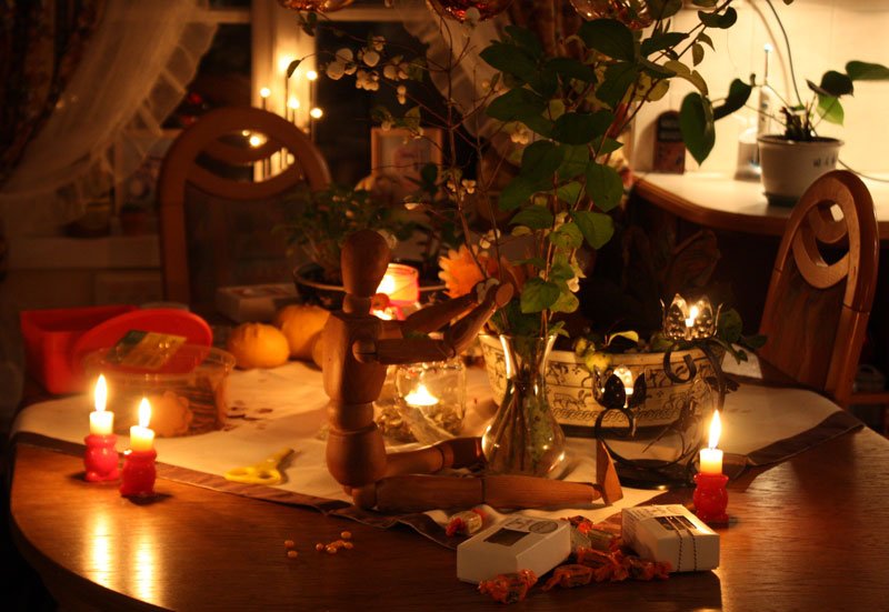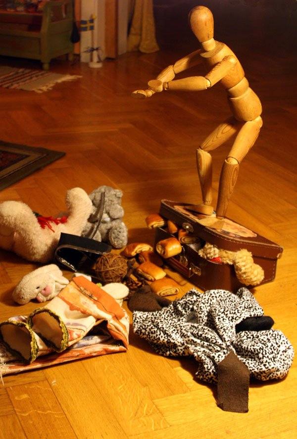 Lill-polarn ville pyssla idag, och gubben tyckte väl att det var en bra idé – så han lät honom hålla till i hallen. Han tänkte bara inte på vad jag hade lagt fram där. På byrån stod nämligen papperslyktor, tändstickor och tänger i alla de slag, sådant som jag plockat undan från köket och skulle …
