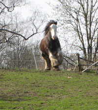 Stackars Shakira, i morse när vi var ute på slingan och promenerade kom hästarna och ville springa med längs tråden. Jag har en nerförsbacke och en raksträcka som de tycker är så roligt att galoppera på. Så idag när vi nästan hade gått färdigt så genade Shakira genom hagen, Beethoven saktar ner och tar hänsyn direkt när det är något mindre i hagen men Bellman kan vara lite lurig och vill jaga ut hundar och dylikt från hagen. Jag sa akta till Shakira och hon vet med än gång att hon skall förflytta sig snabbt ur hagen eller mot motsatt sida. Shakira sprang direkt ut men sprang in med nosen rätt i el tråden och tjöt till och rusade i väg. Hon har en tendens att bli lite blockerad och inte vilja komma tillbaka upp till stallet när det händer något eller om hon blir rejält skrämd.