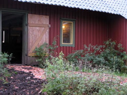 Onsdag igen och vi var uppe hos mig. Jag behövde ha röjt utanför loftet. Vi krattade till hov spåren och la ut mera tegelsten så det inte skulle bli så lerigt för hästarna när de går in och ur stallet. Det har hållit sig riktigt bra sen jag flyttade ut tråden en bit så de kan stå utanför loftet och då slipper jag också att de skiter på teglet. Vi kommer att bygga en altan utanför loftet