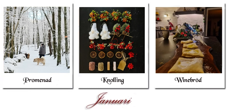 December – Har varit riktigt tufft på jobbet och jag hoppas nästa år skall bli bättre. Har pyntat och pysslat för fullt. Känns underbart att jag är bättre på att ta tillvara på kvalitets tid, städa kan man alltid göra senare och folk är alltid välkomna men får ta det som det är här. Äntligen har vi fått igång elementen på övervåningen och Micaels hus är riktigt varmt nu när hans element är igång. Hans kök kommer att bli så sött och som det ser ut nu, så kommer nog det mesta vara klart nästa år. Dammen är fortfarande en glädjekälla, nu med sina is formationer.