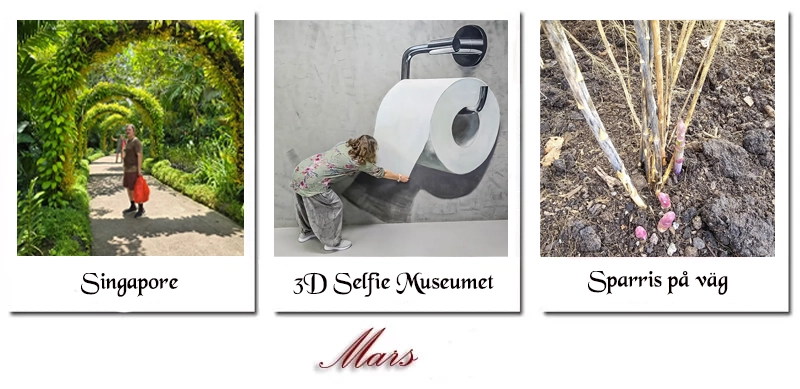 Mars – Fimpen blir påkörd. Kändes bara för bedrövligt. Vädret har pendlat från kraftigt vårväder till att det vräker ned snö nästa dag. Jag påbörjar med att rensa i gropen och planerar vad jag skall ha för växter. På en av våra kärring onsdagar går jag på smink kurs och ett par dagar senare beslutar jag mig för att färga håret mörkbrunt. Då var jag bara lite gråhårig, hmm! Annat nu!