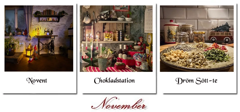 November – Jag plockar in de absolut sista blommorna och örterna från trädgården. När jag trodde att allt var lugnt, då dyker Wumba Wu upp från Afrika! Hua! Men Lill-polarn är glad och får ta hand om den lille gästen. Micael och Nina förlovar sig * Grattis * Förberedelser inför julen