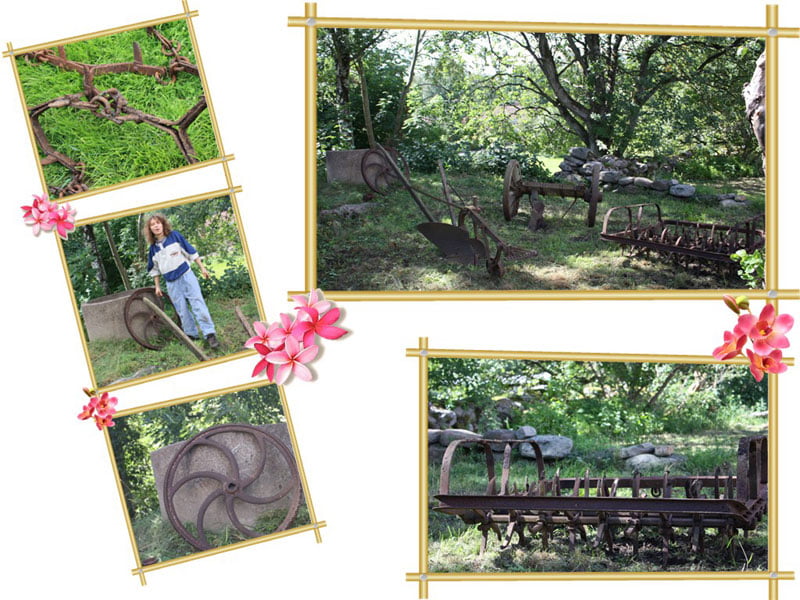 När jag klippte gräsmattan, funderade jag på hur man skulle kunna fixa till en bit där vi har bilarna. Det blir ett utrymme som bara växer igen och ser bedrövligt ut. Jag hade varit nere där ladan stod, och hittat vagnshjul och lite annat. Det sista som stod kvar efter branden är på väg att ge sig så gubben hjälpte mig att dra upp de sista grejerna som fanns kvar. Göta Petter vad det vägde. Vi hade hagat in precis där vi skulle dra fram grejerna och hästarna är ju så himla nyfikna, så de var som enorma proppar. Hade Elvy varit med så hade jag bett henne spänna för, så man hade kunnat nyttja hästarna istället för att slita som galningar.