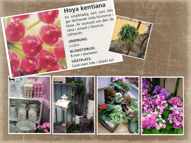 Det var härligt att se alla olika orkidéer och porslin blommor. Jag köpte en porslin blomma som heter Hoya Kentiana. Har jag tur så kan jag byta skott med Elvy och Rosa.