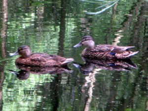 I dag fotograferade jag änderna igen och nu börjar korten bli bättre. Jag har en Canon PowerShot A710 IS och testar de olika inställningarna. Dessa kort har jag tagit med inställningen barn/djur, men om jag inte använde blixten så får jag upp en skak symbol och bilderna blir suddiga. Jag läste på nätet att jag skulle ställt in ISO på något istället för auto. Jag tippar att det är blixten som gör att vattnet blir så grönt. Jag har förlagt använda guiden, så jag försöker hitta så mycket information på nätet som jag kan. Det är den stora fördelen med digitalkameran att man kan testa hur mycket som helst. Shakira behöver sin motion och det är smidigt att testa lite olika inställningar när man ändå är ute. Shakira är så van att jag fotografera att hon sätter sig snällt och väntar tills jag är klar, men ibland ser hon lite störd ut och tycker jag är jobbig. Änderna verkar hon har tröttnat på, för idag åt hon på allt som kom i hennes väg medan hon väntade.