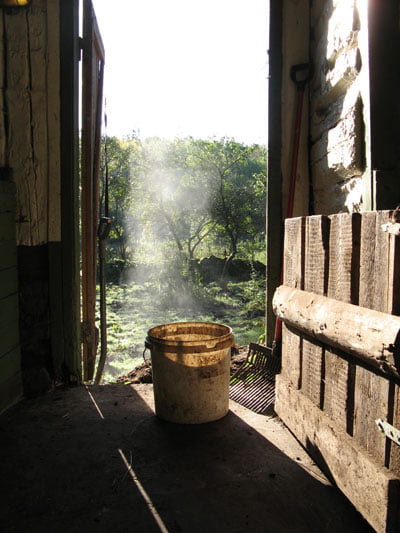 I går när jag gick upp och fodrade hästarna var det så härligt väder. Solen sken och man kände hur energin kom krypande. Jag tog en bild på gödselspannen, tyckte det såg så lite läckert ut när det rykte. Hade det varit för ett par år sedan hade jag haft en helt annan känsla.