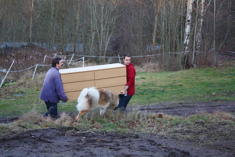 Dagens bild är på gubben och Tobias. Nu har Tobias fått en säng till sitt hem och påbörjar flytten av sina saker. Han har sovit två nätter i sitt hem och det har fugerat bra. Nu är det bara sorteringen av alla cd skivor och kläder som skall göras innan jag kan städa upp hans gamla rum ordentligt. Han kommer än så länge ner till oss och äter, så får vi se när han skall börja laga sin egen mat och börja stå helt på egna ben. Han har läst in sina poäng så att han kan börja söka lärlingsplats och fått extra jobb på bion, så det börjar röra sig i rätt riktning. Helt suveränt att han bara bor par meter upp, nära men ändå borta.