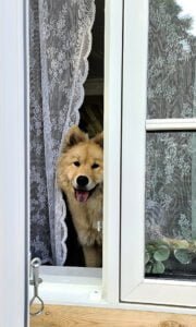 Som tur var fick vi kepsar men det hjälpte inte riktigt när Rosa stod och rollade över mig, jösses vad prickig jag blev i ansiktet. Jag flyttade mig snabbt närmare Elvy men hon var inte så mycket bättre hon med sitt skvättande. Det tog lite tid innan vi fick bra flyt på målandet men sen gick det jätte bra och vi gladde oss hur fint det blev. Vi provade med roller först men det var ingen hit! Putsen lossade och rollern vägde bly, så det fick bli penslar.