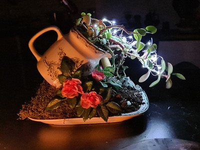 Det är så himla skönt att han kan roa sig själv, även om man blir lite matt på alla hyss han hittar på. Jag tar med mig lite kaffe ut till Lill-polarn så kan vi sätta oss och titta på blommorna i gropen och planera om det är något som behöver flyttas. Lill-polarn var så upptagen med sitt brummande att han inte hörde när jag kom.