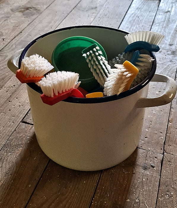 Pappas bra att ha låda, han samlade på allt. Mamma passade på när det var reor och köpte in en hel del, hittade ännu mera diskborstar. När vi flyttade till gården för 20 år sedan tog jag in lika många som jag hittade idag, Det var väl i och för sig så man gjorde förr och sedan sparade allt. Vi har fortfarande lite att gå igenom , men nu börjar de bli tom och jag vill lämna så lite som möjligt till sönerna, så de inte står så som vi har gjort i omgångar.