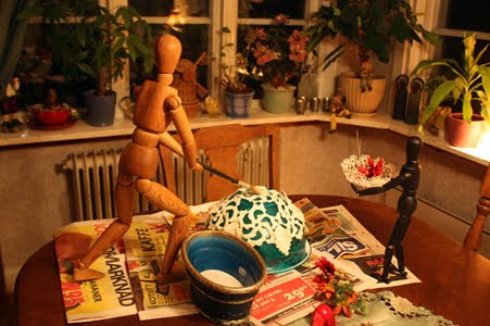 Sedan gick jag upp för att kolla hans getingbo och jösses vilka ilskna getingar. Men vi hade Anticimex på försäkringen så det blir deras jobb att ta ner dessa bon. Små bon brukar vi ta med dessa är bara för stora.