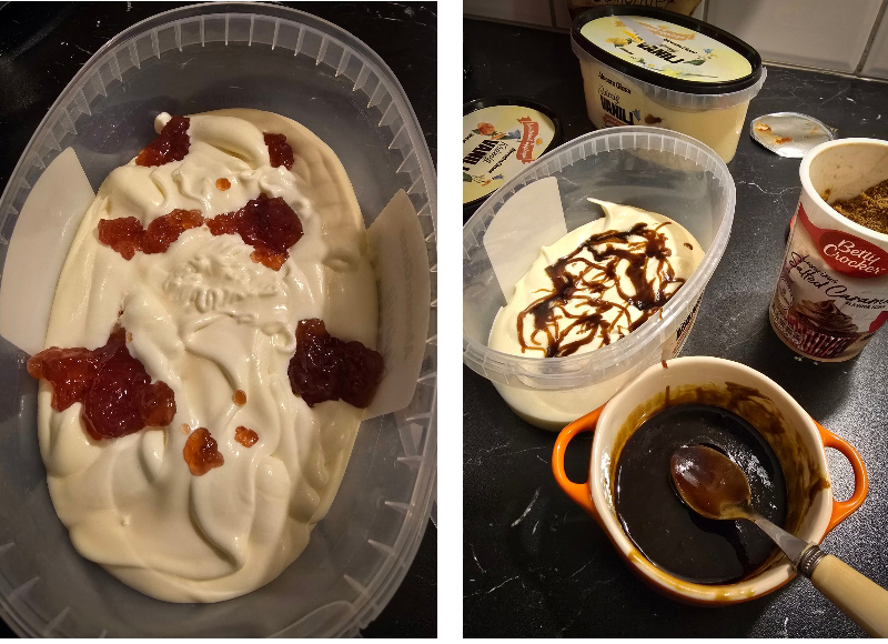 Så det blev en bytta vanilj med jordgubbe och en bytta med vanilj med saltad karamell.