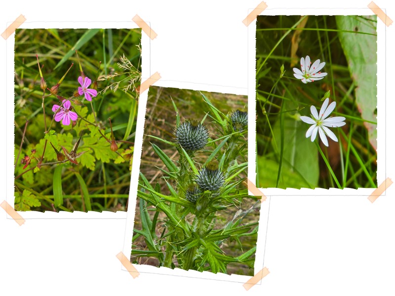 Vi hann att ta en fin promenad med hundarna i Bunketorp innan regnet började. Det växte Johannesört längs kanten och jag plockade en liten bukett.