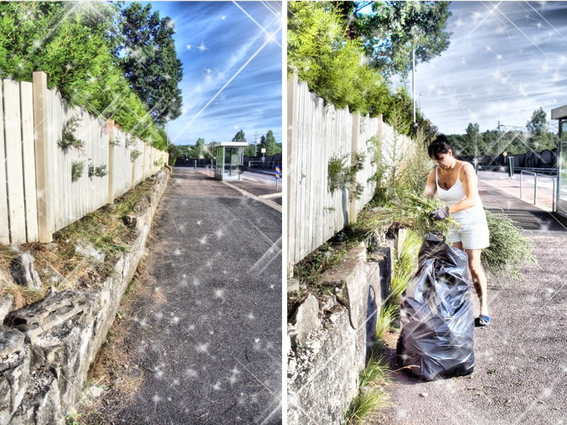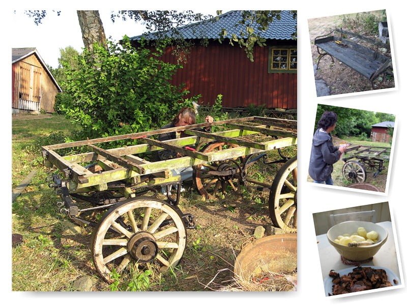 I dag skulle vi rensa utanför Rosas staket, så Rosa bjöd på stärkande tunnbröd med köttfärs och sallad. Mums vad gott det var! Det gick väldigt fort att rensa, men så varmt det var. Jag trodde det skulle ta längre tid så jag hade långbyxor på mig, absolut ingen höjdare. Sedan var deras häcksax en sådan där med långt skaft som blir svintung att hålla efter ett tag. Jag var på väg att tjonga till ett ex. antal cyklister när jag svingade runt den. Rosa tyckte det var bäst att ge mig sopborsten som inte var så farlig! Hmm!!
